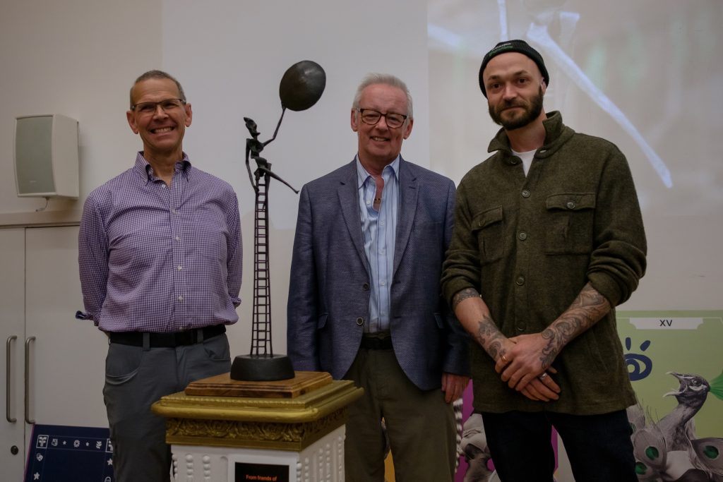 On Monday 18 August 2025, friends and supporters of Arkle Theatre Company unveiled a sculpture to mark the thirty year legacy the company, and to recognise the contribution of founders Rob Mackean and Michael Mulligan to the arts. The sculpture was unveiled at a reception attended by alumni of the theatre company and held at Fringe Central at the Grassmarket Community Project.